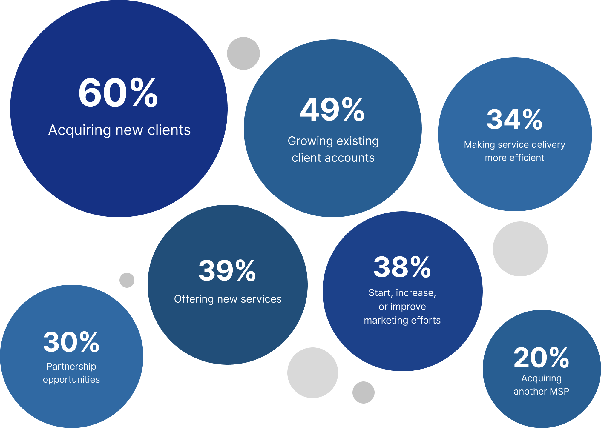 Those anticipating growth expect the top driver to be “Acquiring new clients” at 60% — a 13% increase from last year — indicating a more aggressive acquisition strategy. Interestingly, “Growing existing client accounts” jumped from the #4 spot last year to #2 this year (49% in 2026 vs. 35% 2025), suggesting MSPs realize the vital role customer expansion should play in their growth strategy (vs. net-new acquisition alone). Investments in sales and marketing remain stable, showing that MSPs aren’t dialling back discretionary spending that supports their growth.