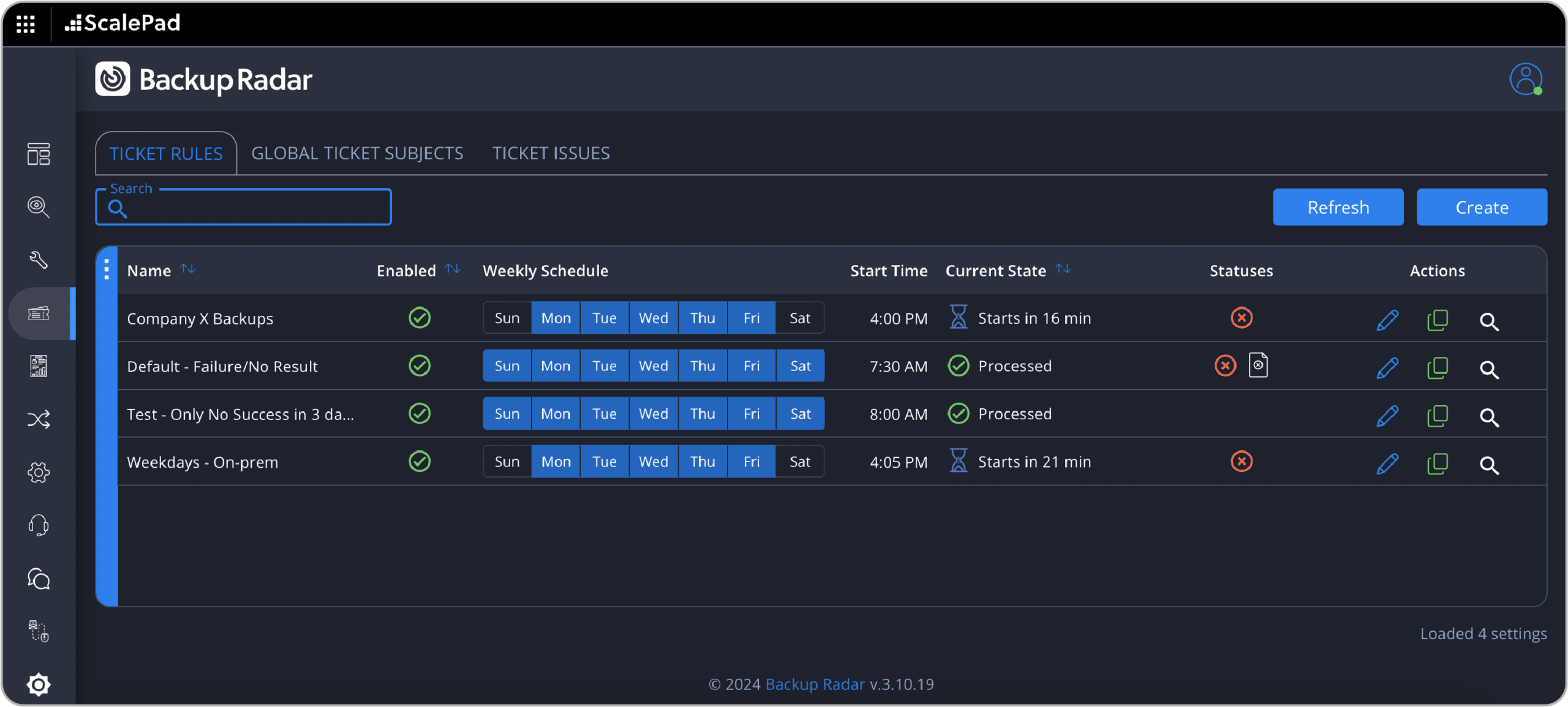 Flexible ticketing profiles can create tickets in the appropriate queue with the proper status, priority, type, subtype, item, and source. Backup Radar’s intelligent ticketing system can alert on failure by creating the ticket to ensure any high priority backups do not get missed in your workflow, while ensuring you only see what’s important. Everything you need, and only what you need.