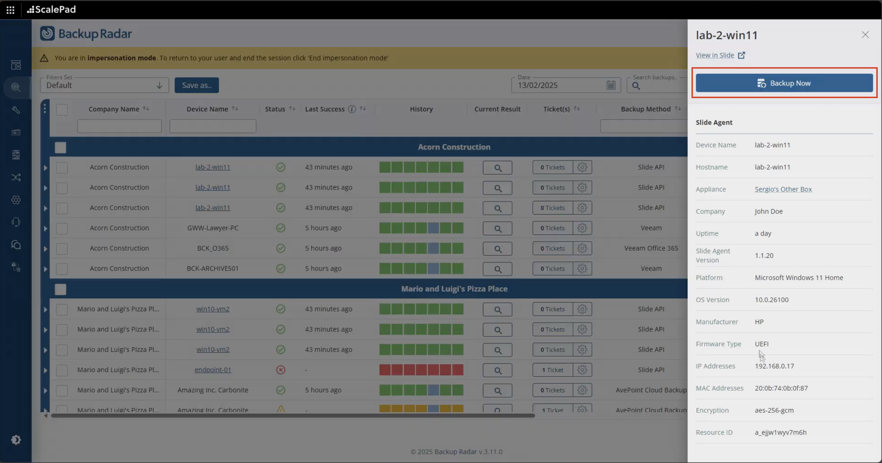 ScalePad Backup Radar seamlessly connects to Slide through direct API integration, allowing you to monitor and report on your entire backup estate centrally. Slide’s state-of-the-art box makes backups easier and faster than ever before. Protect data in the blink of an eye with Backup Radar and Slide.
