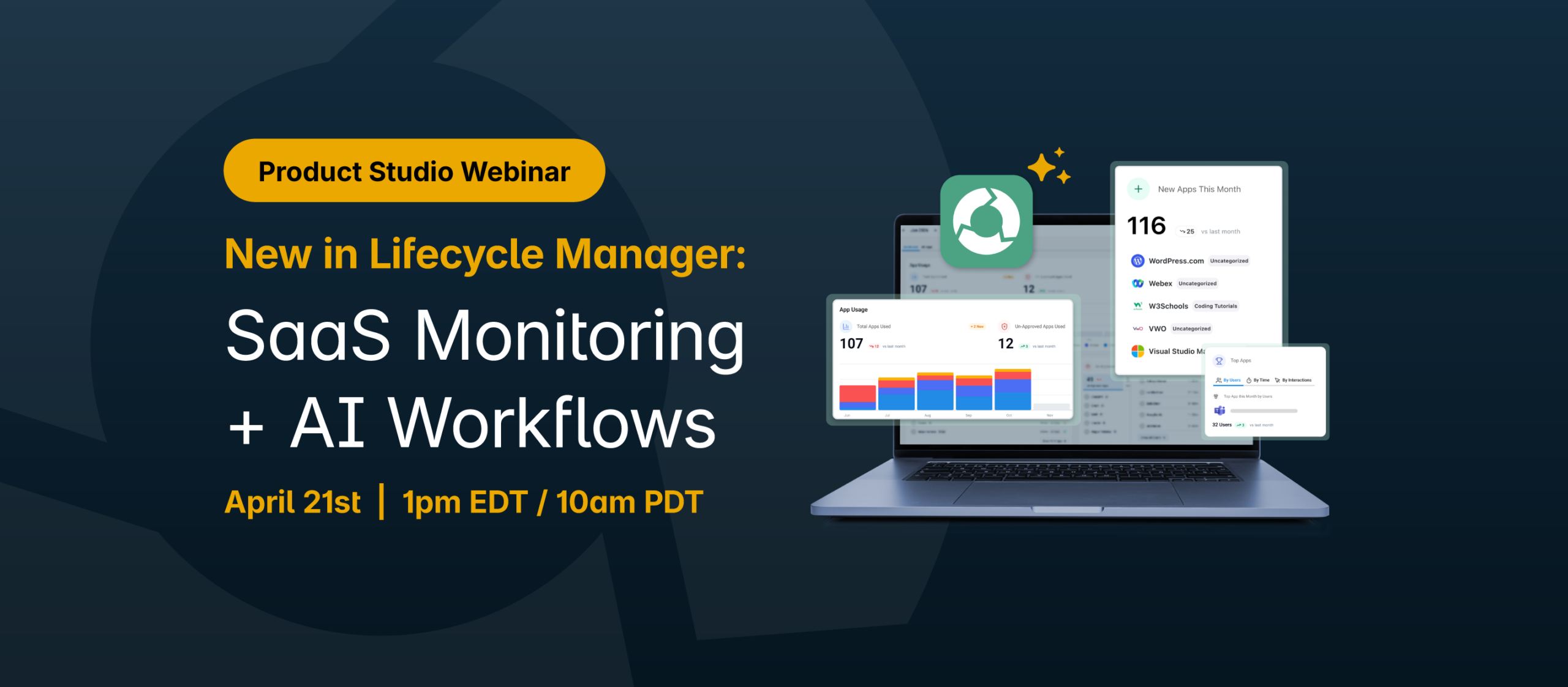 Join a special edition of our Product Studio webinar, featuring two major Lifecycle Manager innovations that deliver deeper SaaS visibility and smarter AI automation.