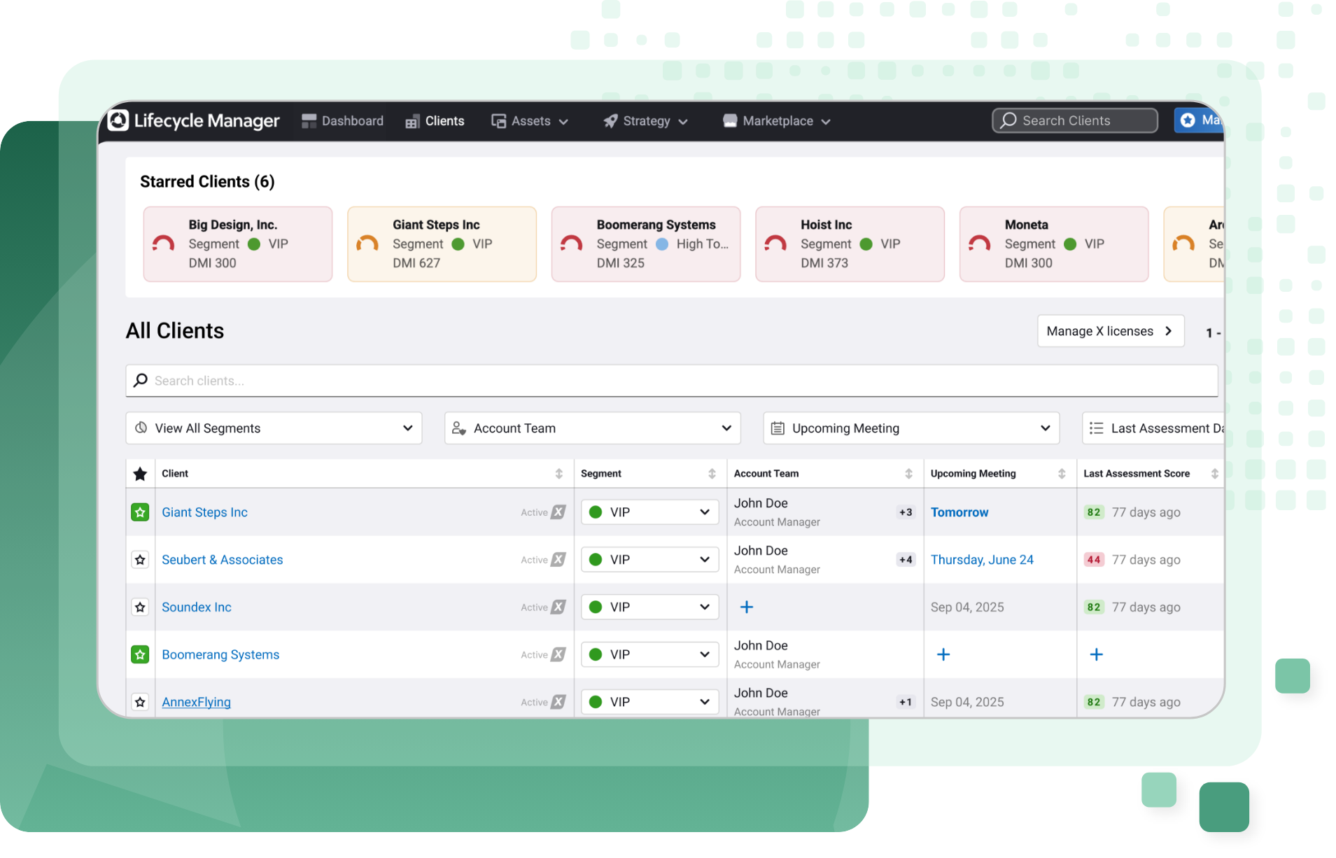 Monitor licensing, user access, and vendor contracts for a unified view of client software environments.