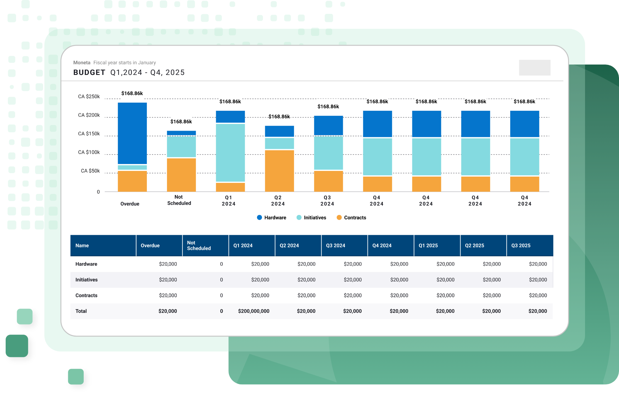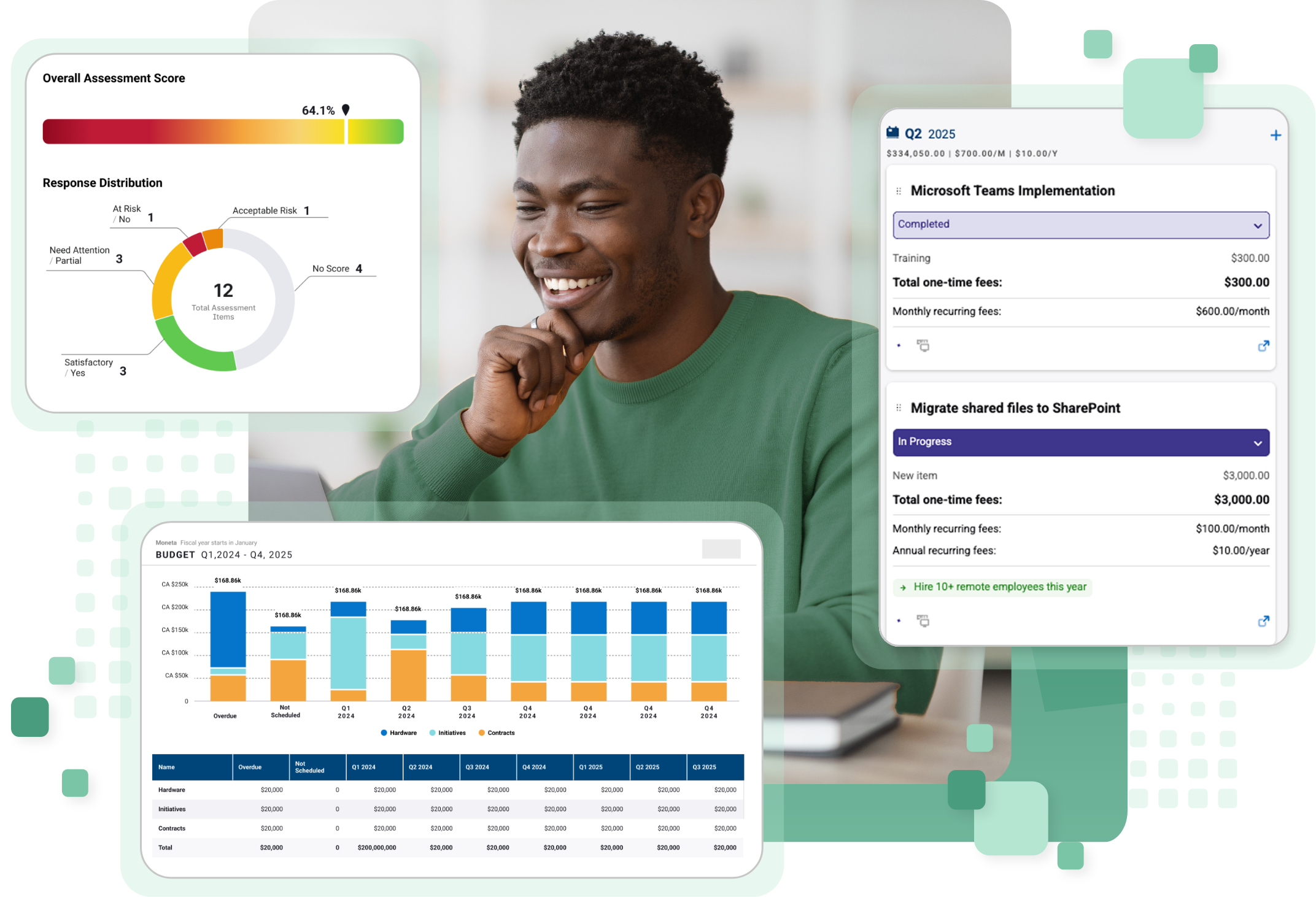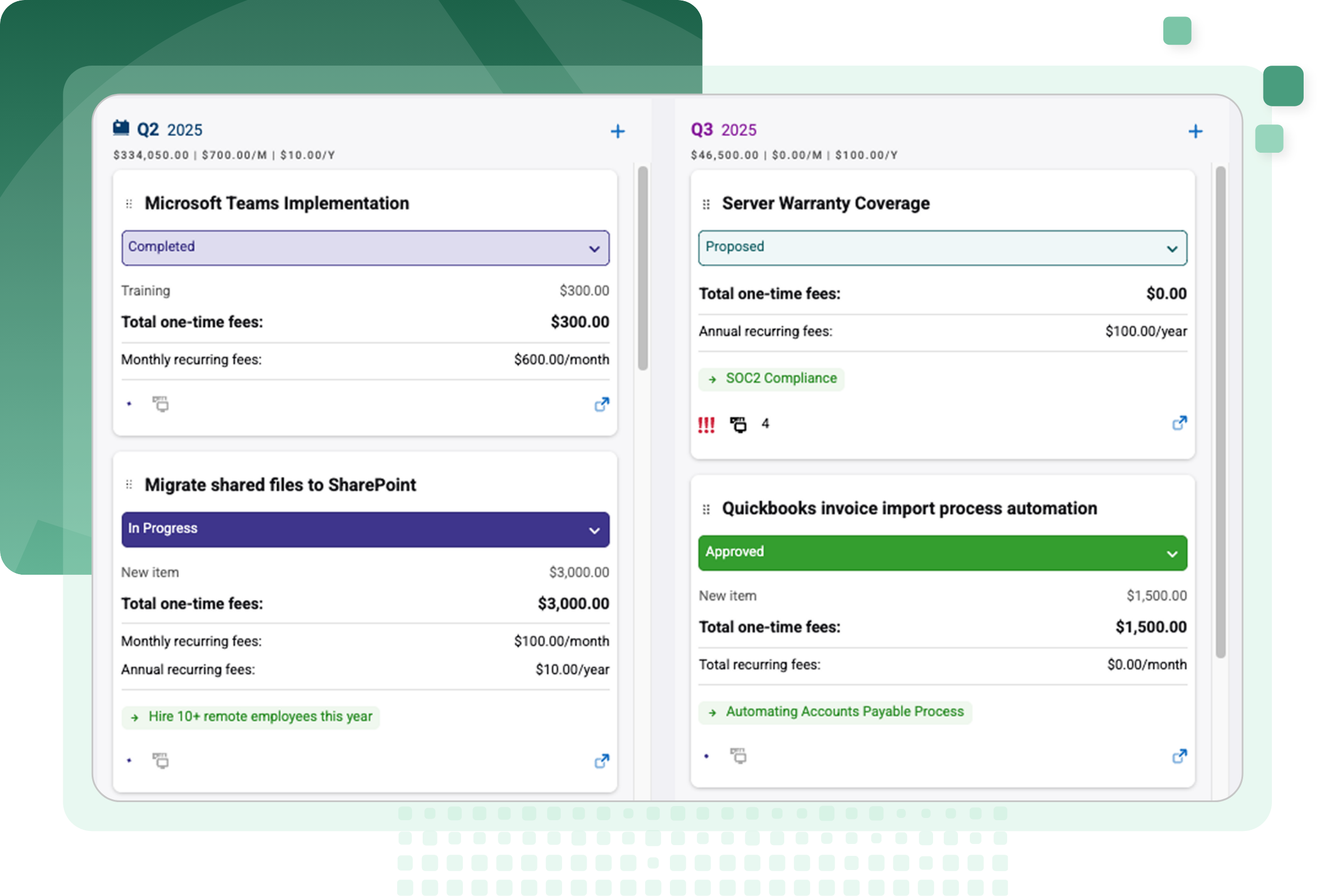 Bring vendor contracts, recommended initiatives, and upcoming hardware replacements together in long-term budgets.