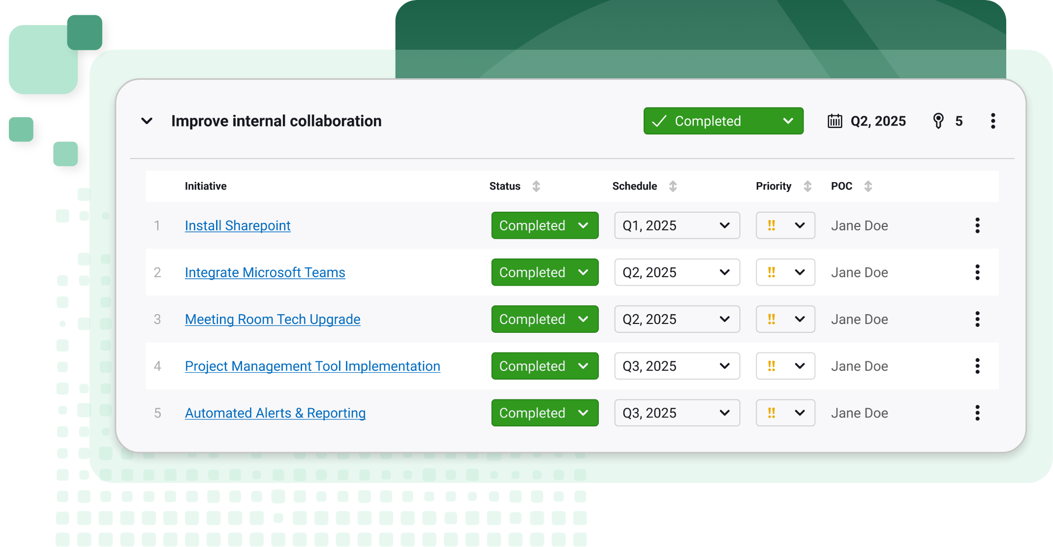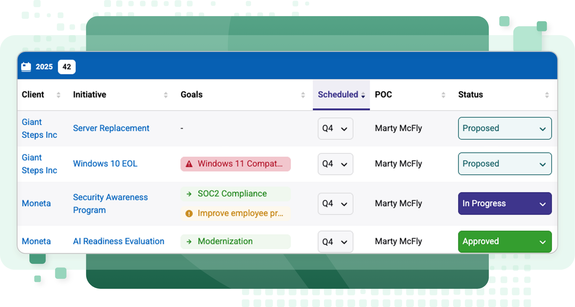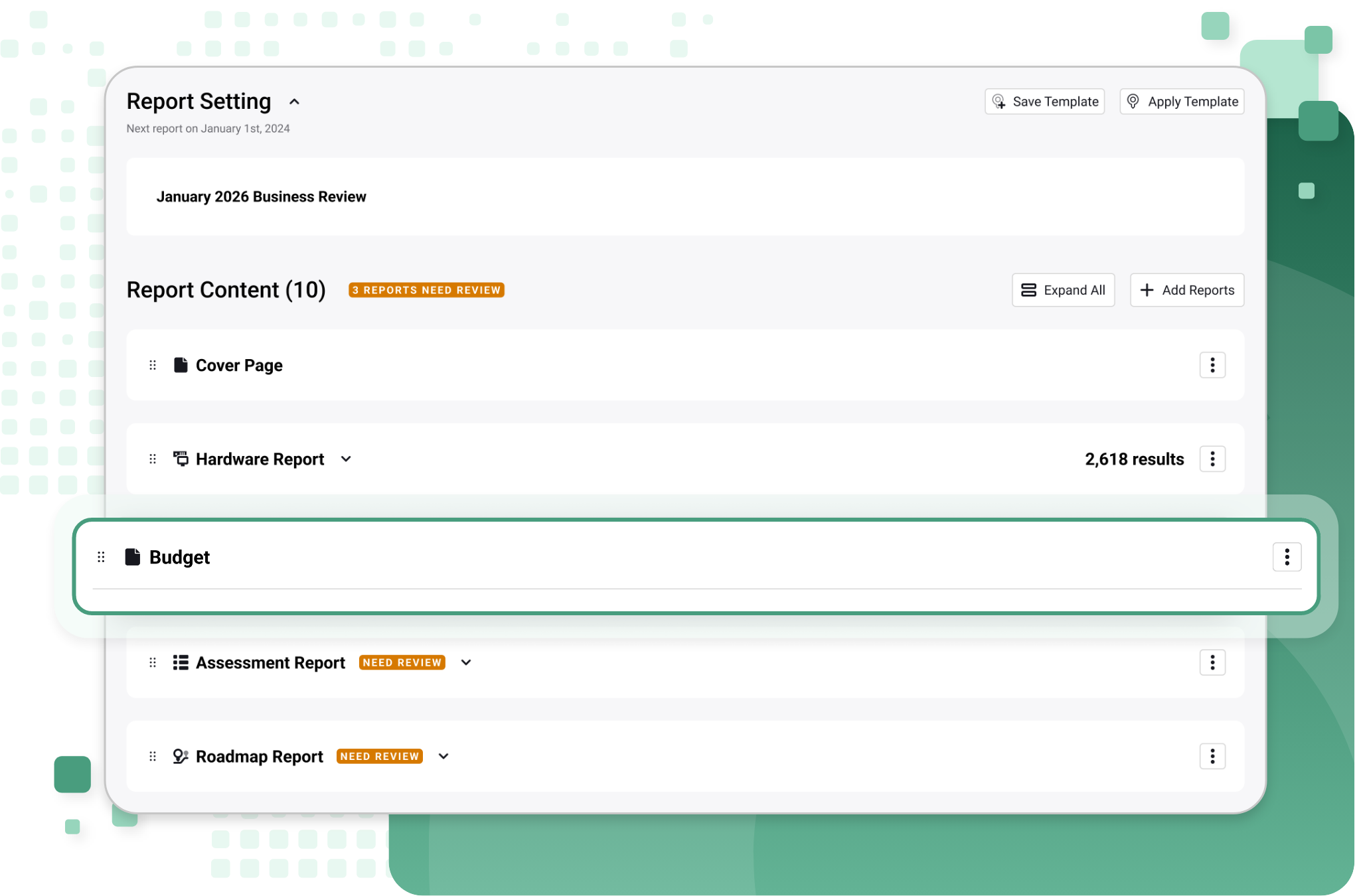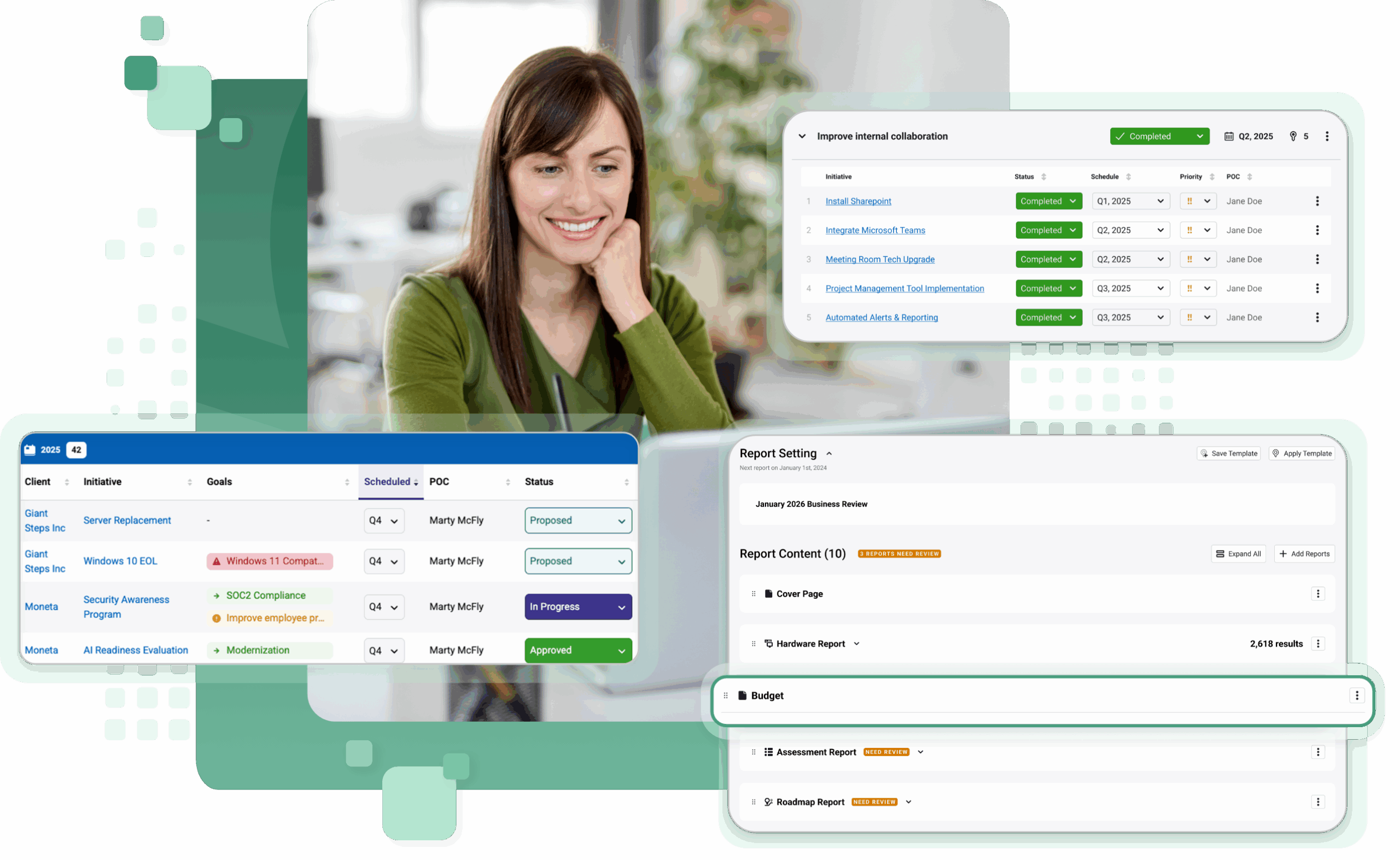 Connect outcomes to actionable plans. Build IT roadmaps that turn identified risks into clear, strategic initiatives.