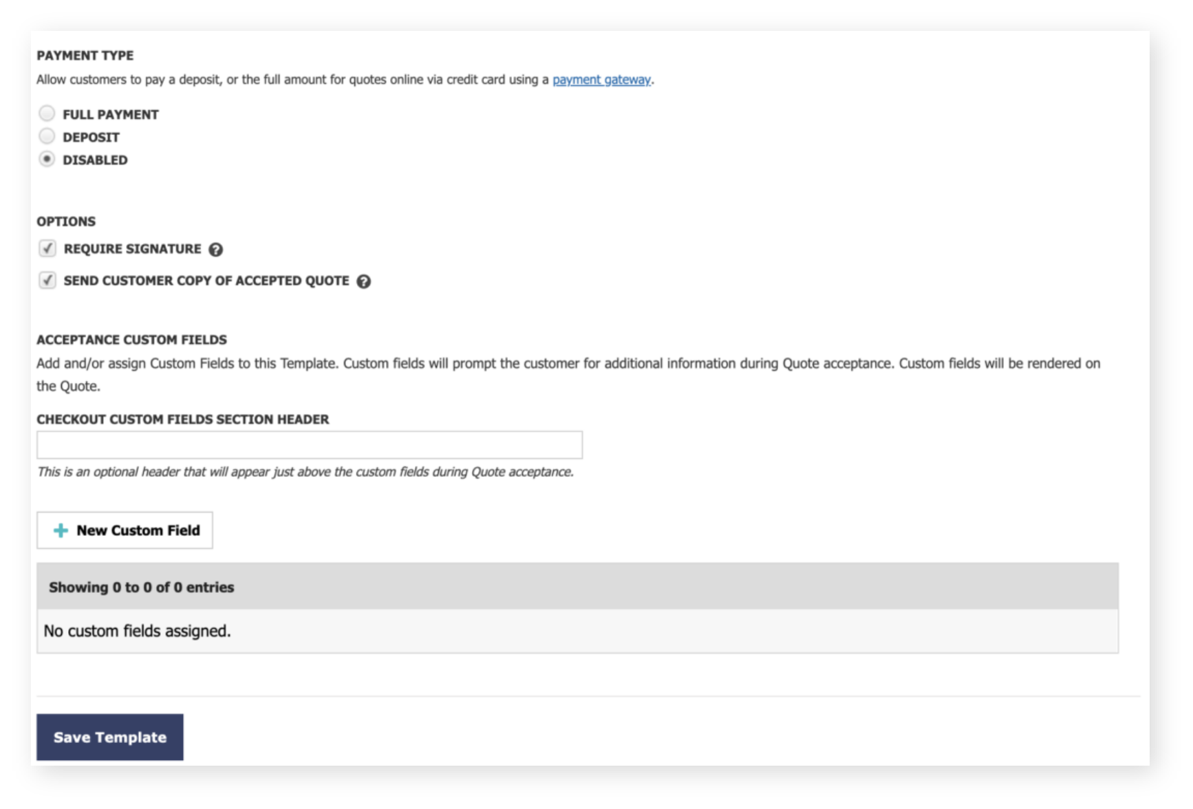 Quoter’s Payment Processing integrates with several popular payment gateways to securely process credit cards at the time of quote acceptance. Choose whether to require a deposit or full payment and even schedule recurring payments, helping improve cash flow by reducing processing time and paperwork.